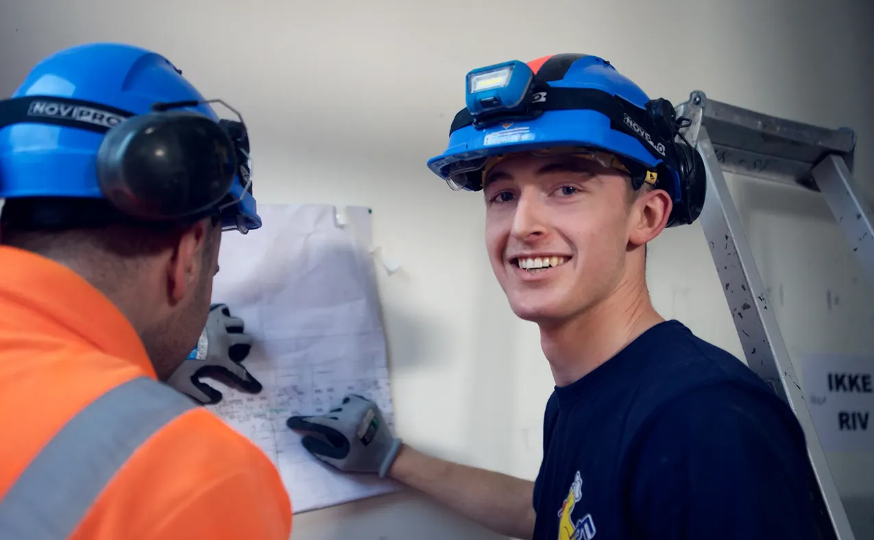 Vi har en dedikert lærlingansvarlig, Geir, som følger opp lærlingenes faglige kompetanse og hjelper dem med forberedelsene til fagprøven. Bente på HR har det administrative ansvaret for lærlingene og støtter dem med personlig oppfølging, lønn, HMS og relasjonen til skole og opplæringskontoret. Våre lærlinger blir også fulgt opp av våre erfarne rørleggere.